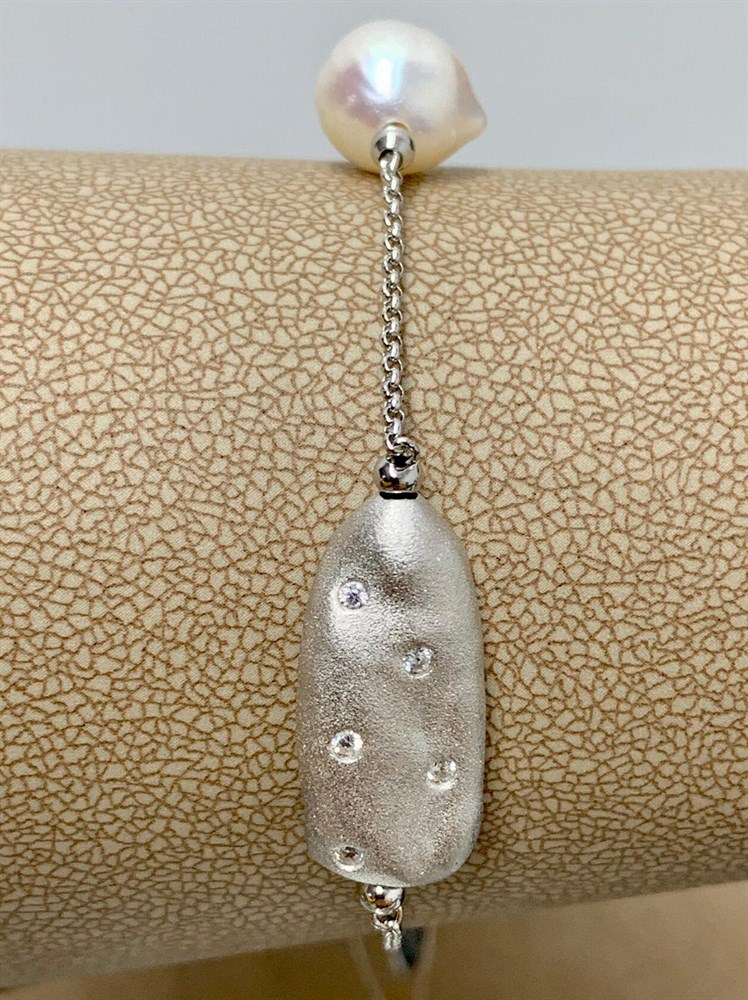 *Браслет р.16,5-19 Жемчуг Фианит Облачка арт. RB-B342-1-X-L-PN-X-W-259 (вес 9,42 г)