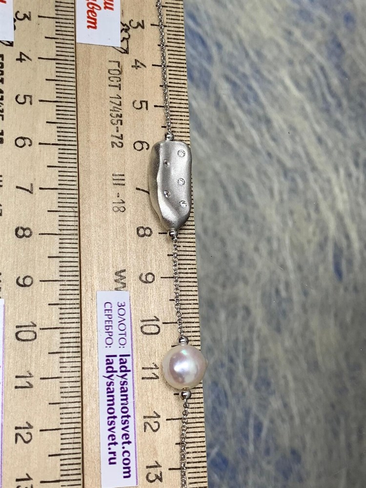 *Колье р.45 Жемчуг Фианит Облачка арт. RB-N338-1-X-L-PN-X-W-552 (вес 6,64 г)