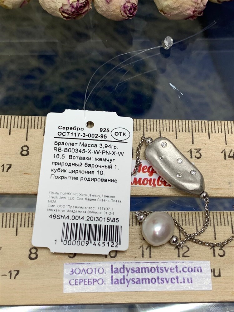 *Браслет р.16,5-19 Жемчуг Фианит Облачка арт. RB-B343-1-X-L-PN-X-W-579 (вес 4,97 г)