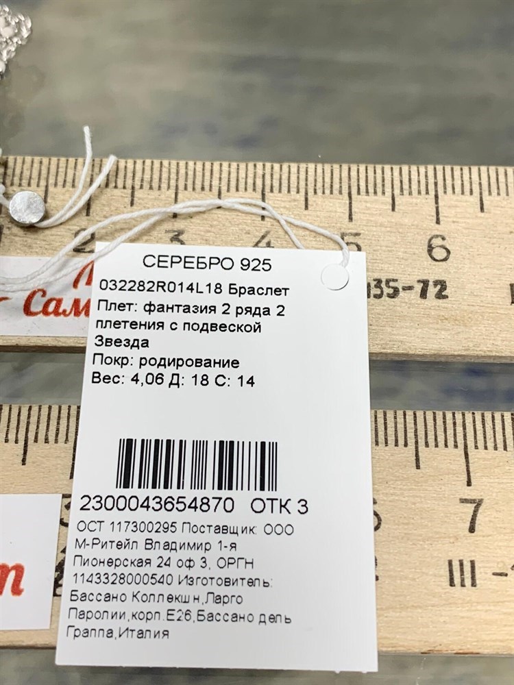 *Браслет р.18-21 Фантазия 2 ряда Роло гладкая Кубики с подвеской Звезда арт. 032282R014L18-870 Вес 4,06 г