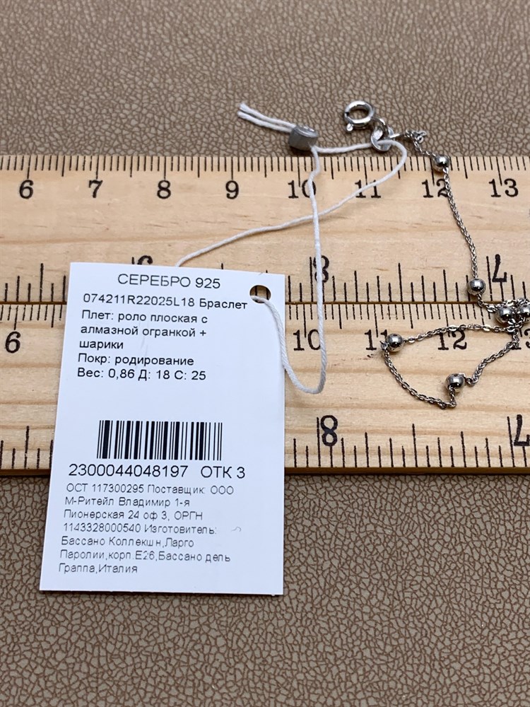 *Браслет р.18 Роло плоская с шариками арт. 074211R22025L18-197 Вес 0,86 г