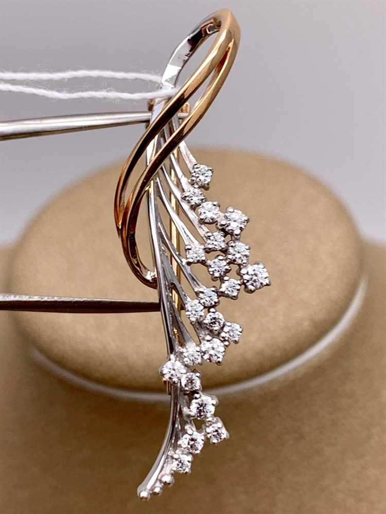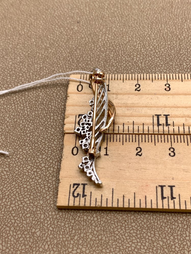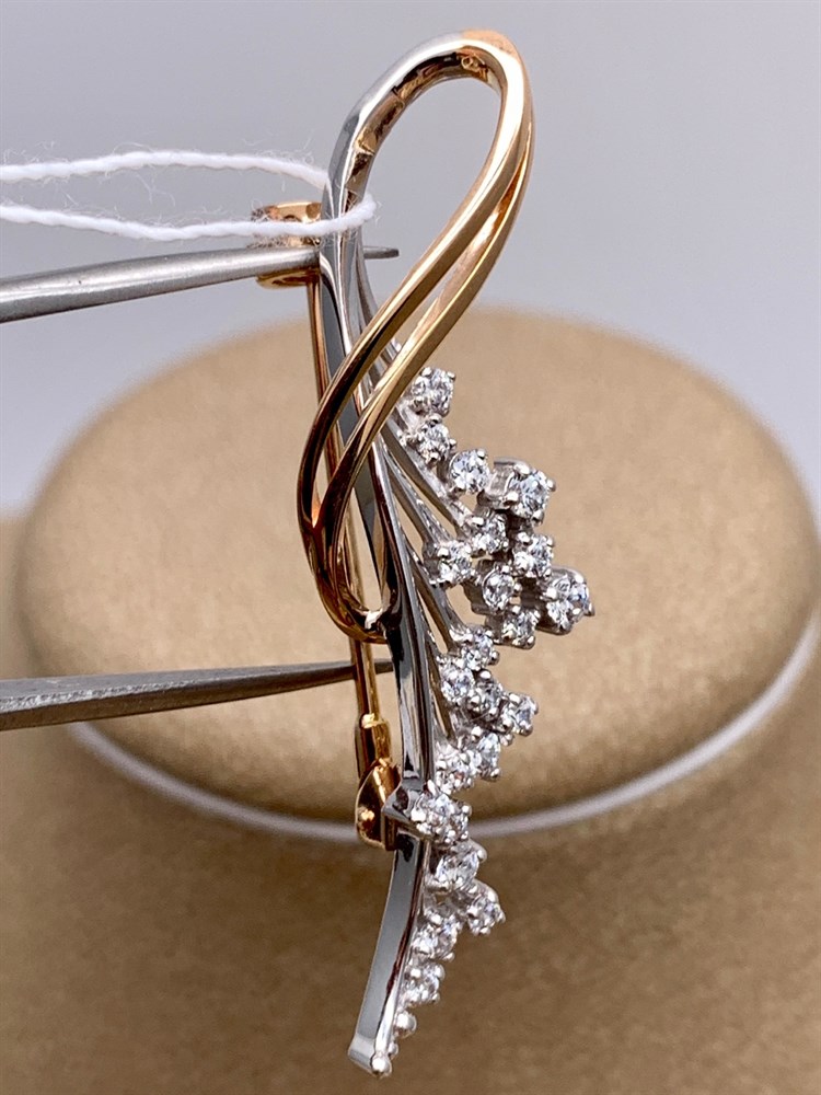 *Брошь Белый Фианит цв Красное и Белое арт. 04-0086-00-501-1111-38-462 (вес 3,68 г)