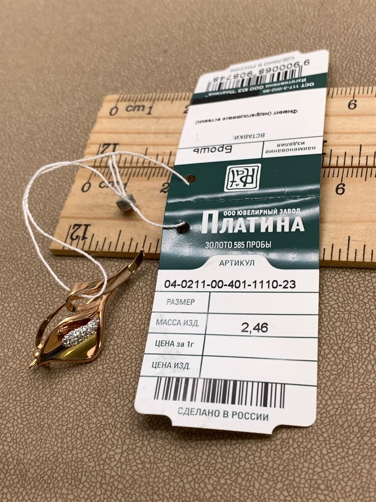 *Подвеска Каллы Белый Фианит цв Красное арт. 03-2936-00-401-1110-23-846 (вес 1,98 г)