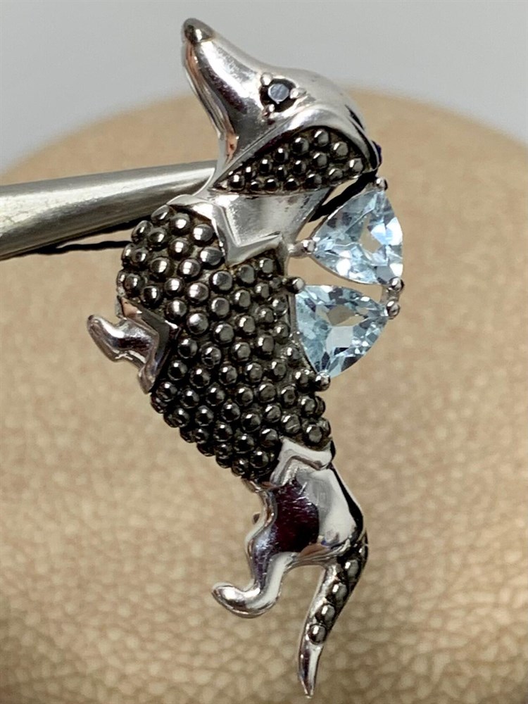 *Брошь Такса Голубой Топаз арт. 04-1012/00ТБ-00-633 вес 2,77 г