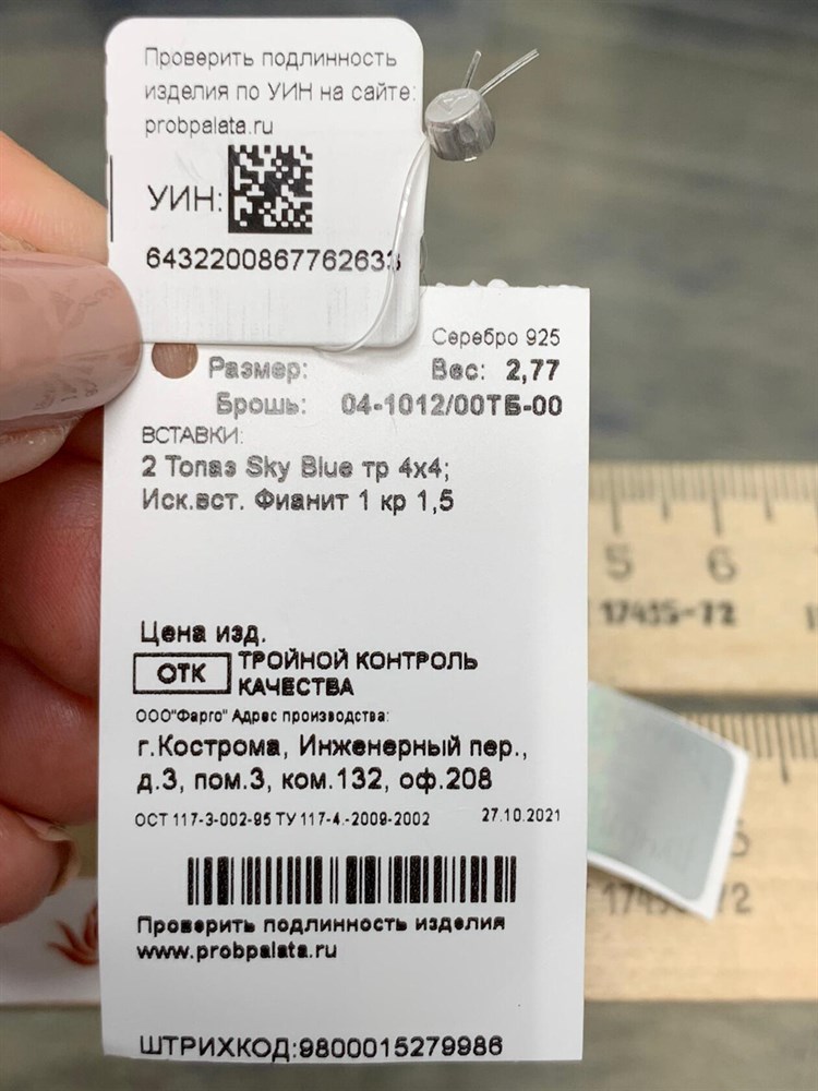 *Серьги Горный Хрусталь арт. 02-2409/00ГХ-00-921 вес 5,28 г