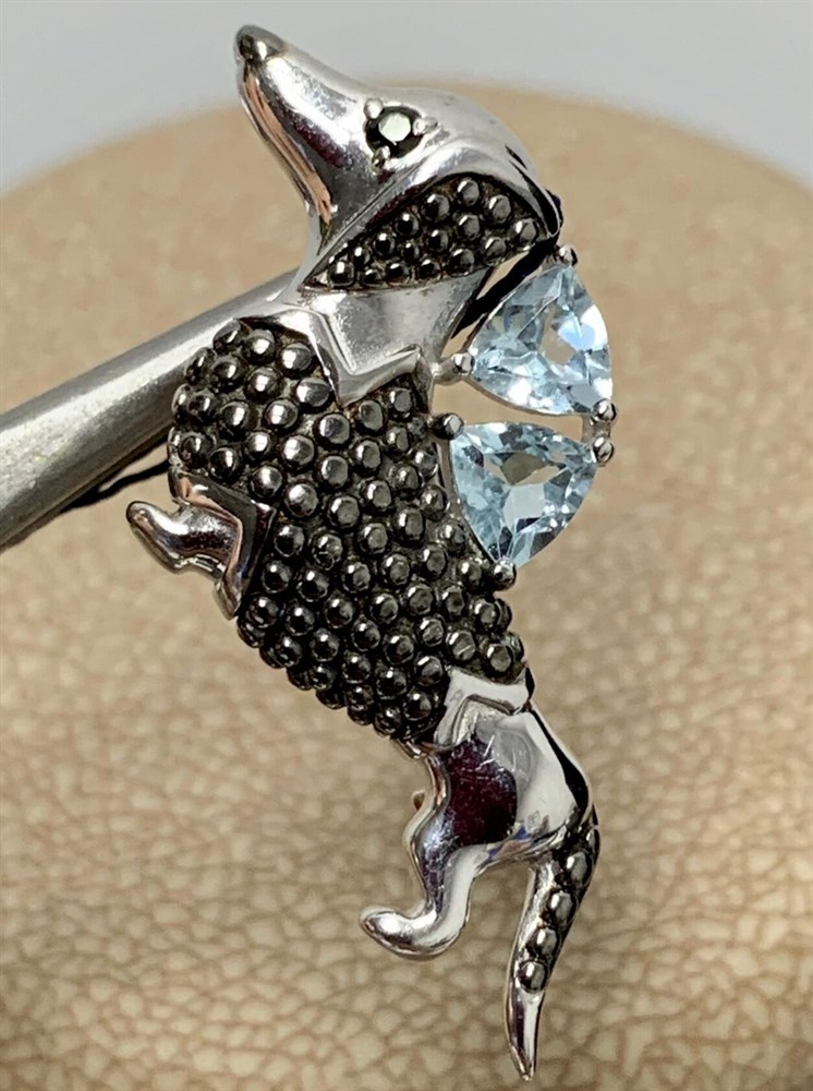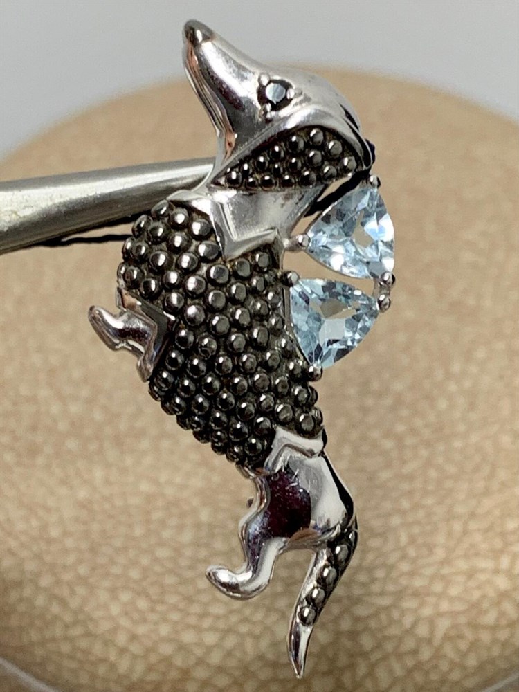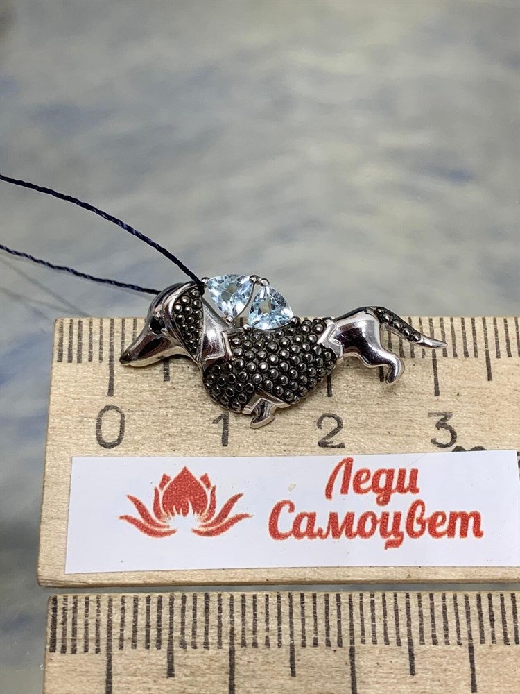 *Брошь Такса Голубой Топаз арт. 04-1012/00ТБ-00-633 вес 2,77 г