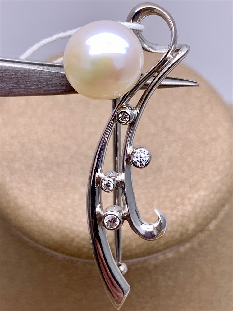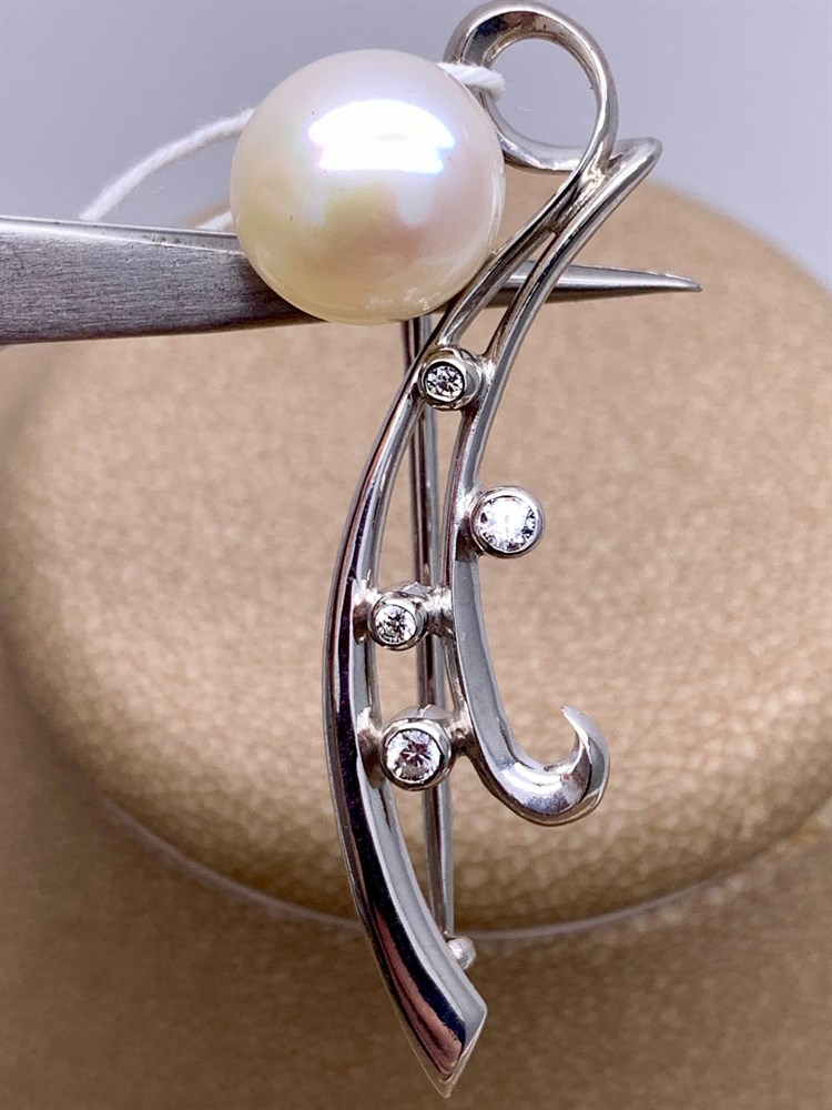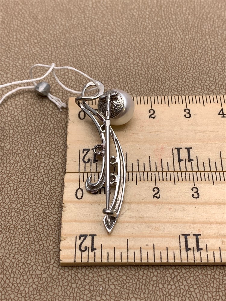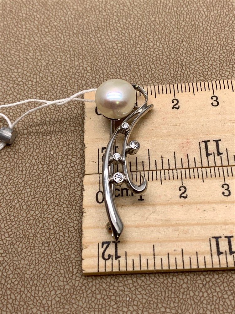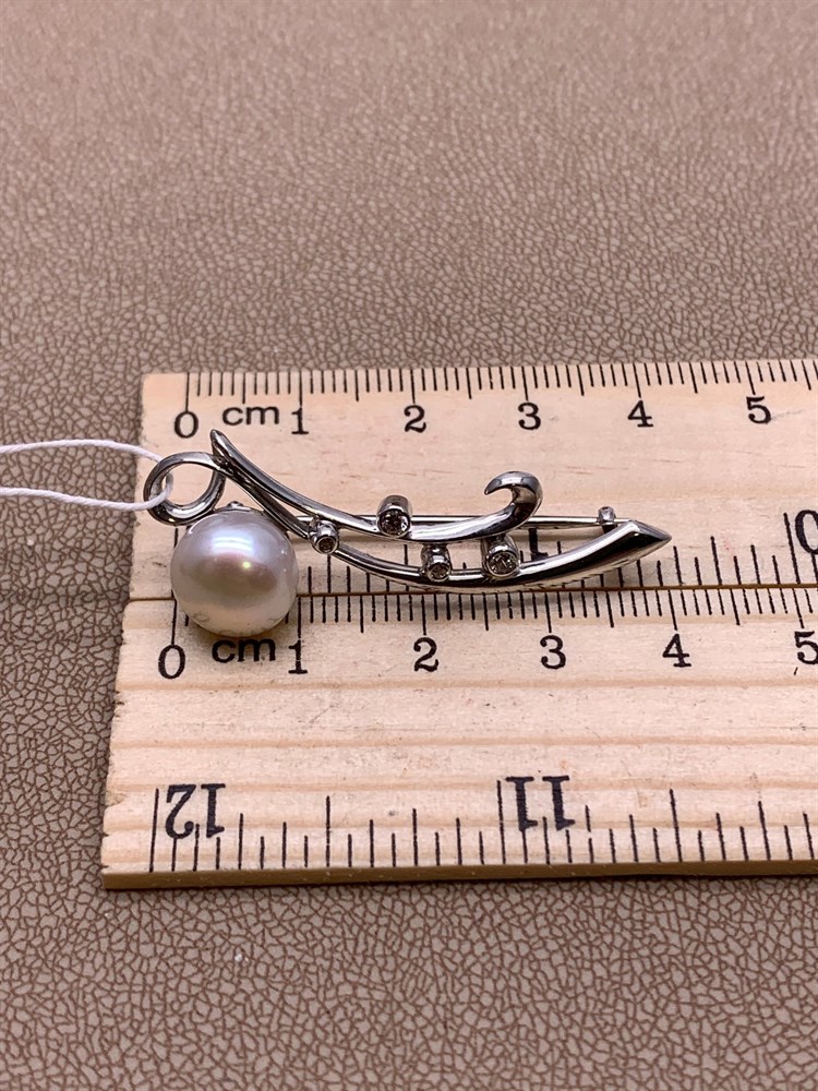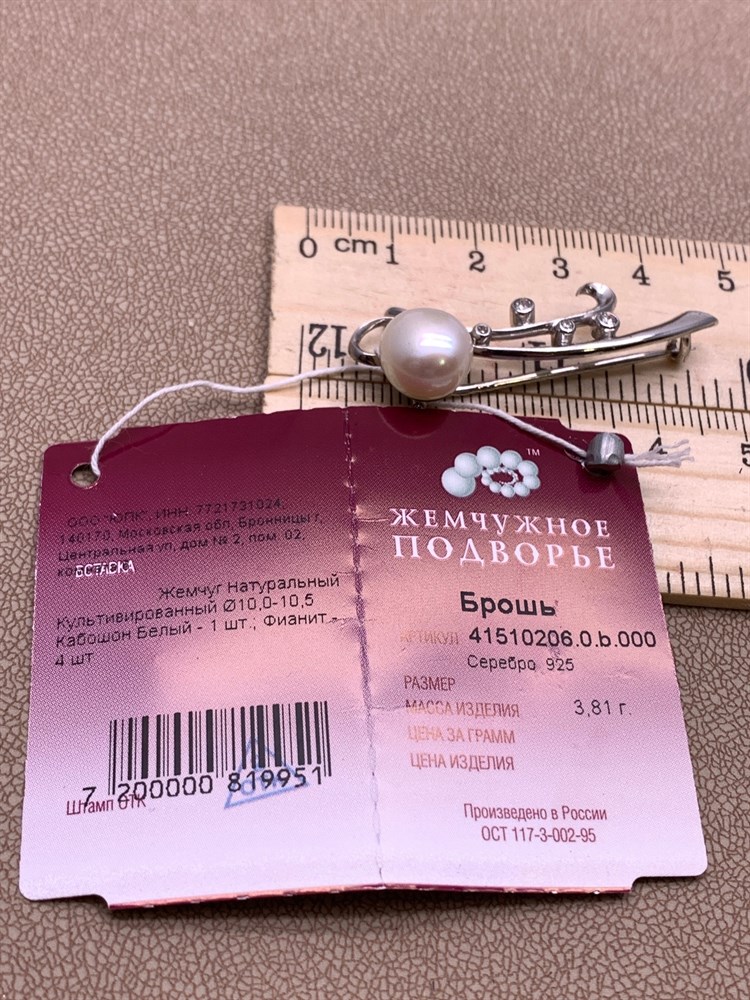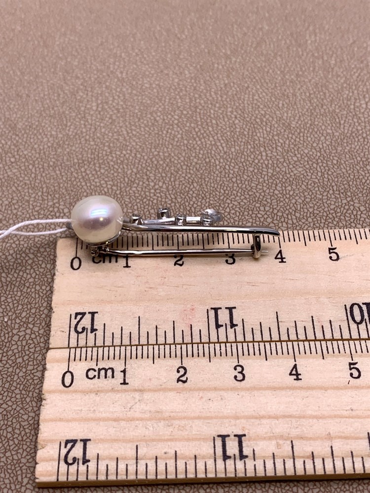 *Брошь Ветвь Белый Жемчуг д.10,5*11мм арт. 4.0215.8.b-722 Вес 3,97 г