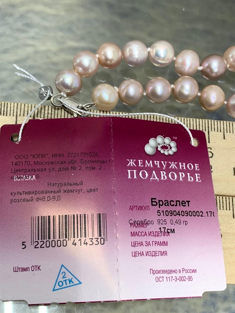 *Ожерелье р.45 д.7*8 Розовый Жемчуг арт. 8А1.8.297ДД0133.45-834