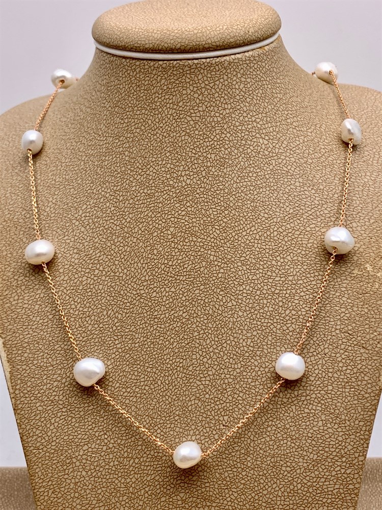 *Ожерелье р.40 Белый Жемчуг д.7,5-8,5 цв Красное арт. 6.F004.a.z-511 Вес 5,67 г