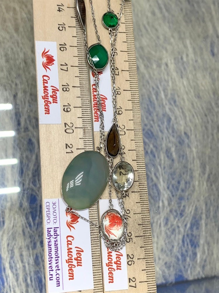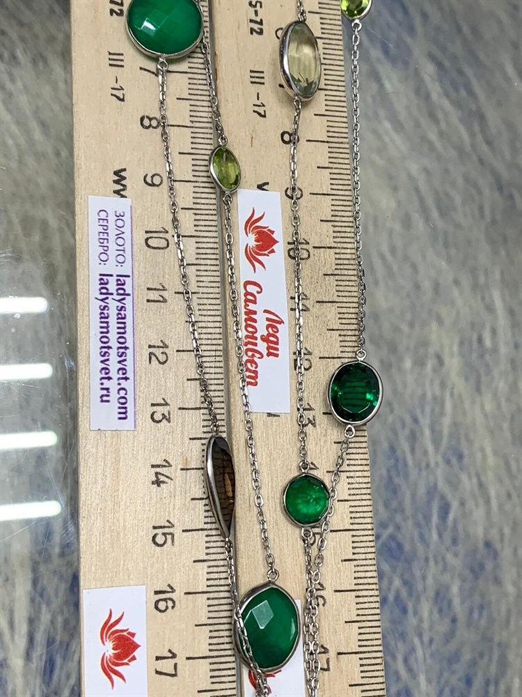 *Колье р.60 Монпасье Зеленый Агат арт. SO-N35781-X-W-ME-X-X-902 Вес 20,67 г