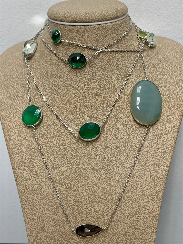 *Колье р.120 Радуга Микс Зеленый Агат арт. SO-N00457-X-W-Gg-X-Mix-625 вес 23,6 г
