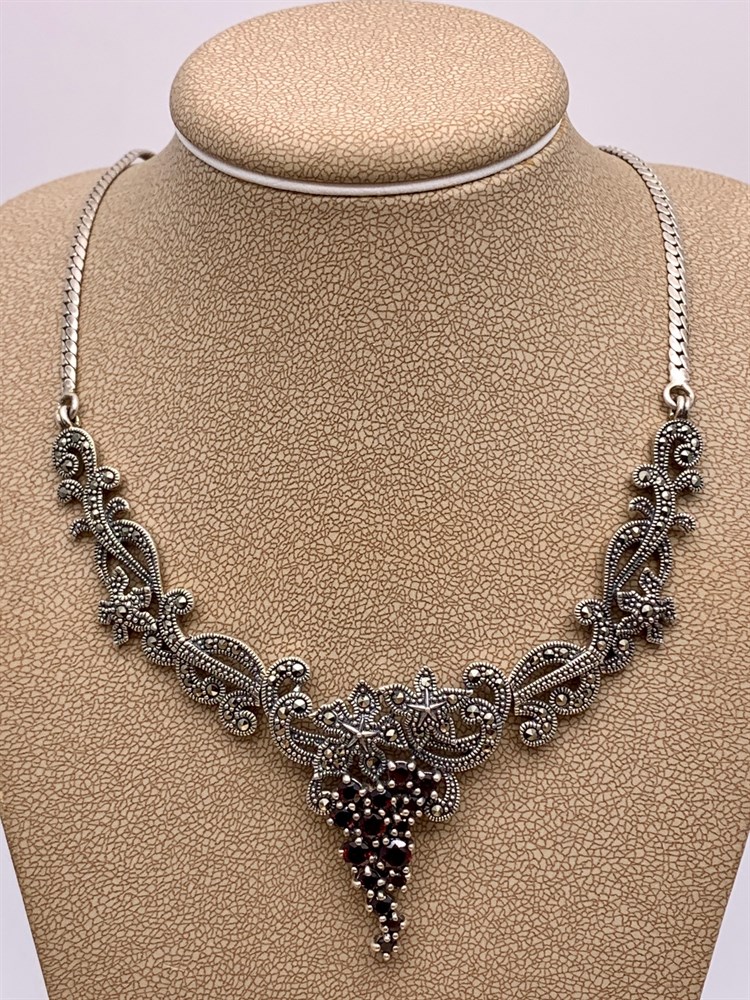 *Колье р.55 Микс Марказит Гранат Пироп арт. NE036-676 вес 20.18 г