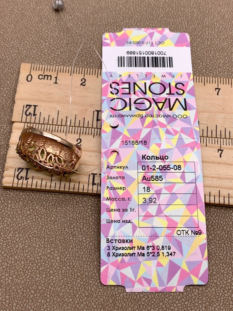 *Кольцо р.18 Хризолит цв Красное арт. 01-5044-00-211-1110-46-654 вес 2,62 г