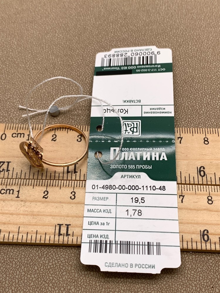 *Кольцо р.19,5 цв Красное арт. 01-4980-00-000-1110-48-893 (вес 1,78 г)