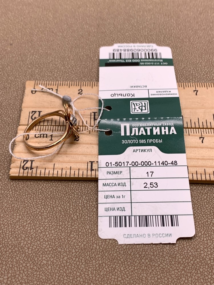 *Кольцо р.18 Рубин цв Красное арт. 01-00673-01-011-01-01-932, (вес 2,27 г)