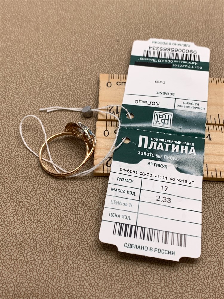 *Кольцо р.17 Топаз цв Красное, Белое арт. 01-5081-00-201-1111-46-334 (вес 2,33 г)