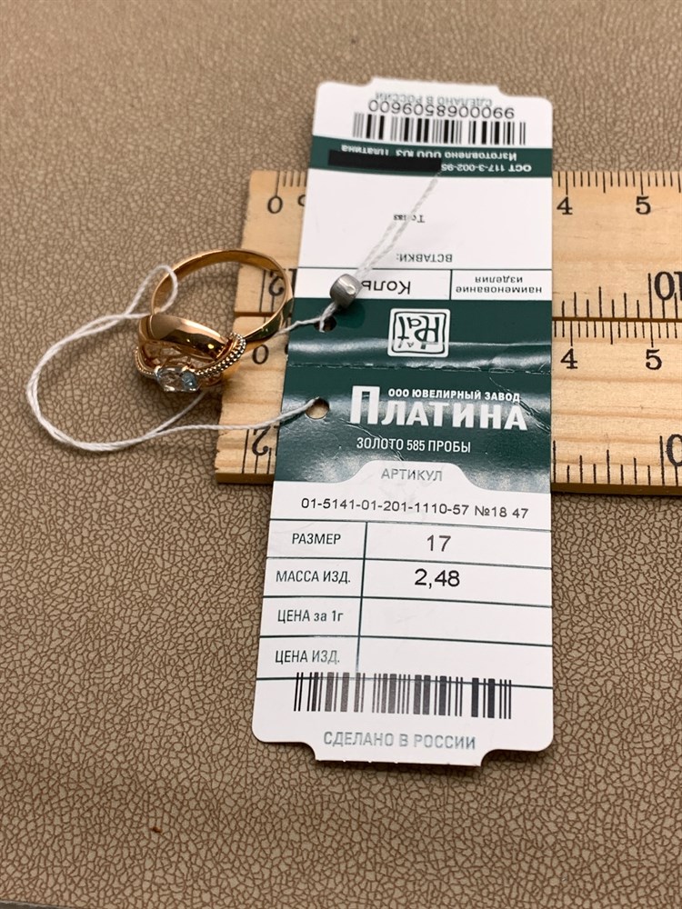 *Кольцо р.17 Топаз цв Красное арт. 01-5141-01-201-1110-57-600 (вес 2,48 г)