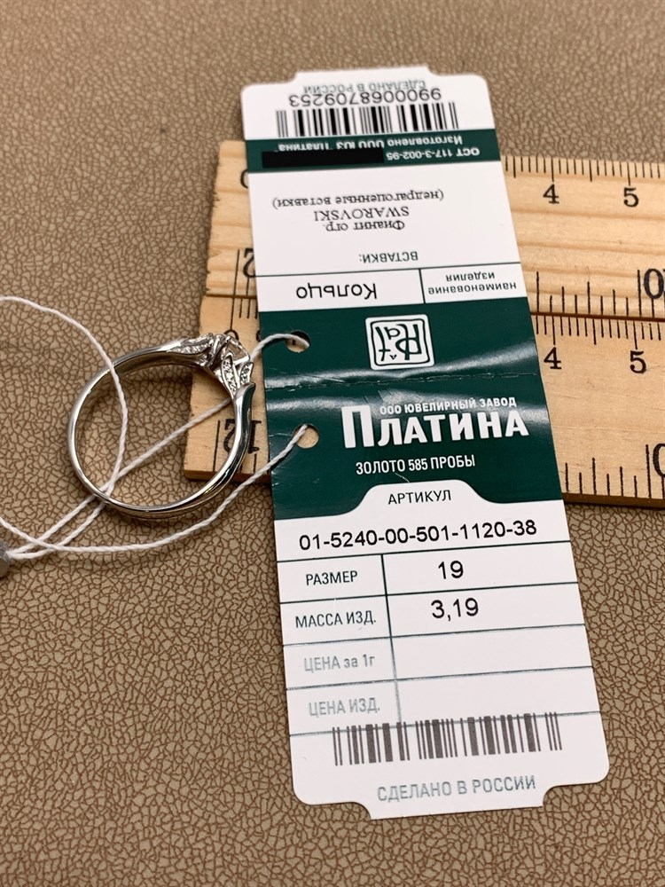 *Кольцо р.19 Белый Фианит цв Белое арт. 01-5240-00-501-1120-38-253 (вес 3,19 г)