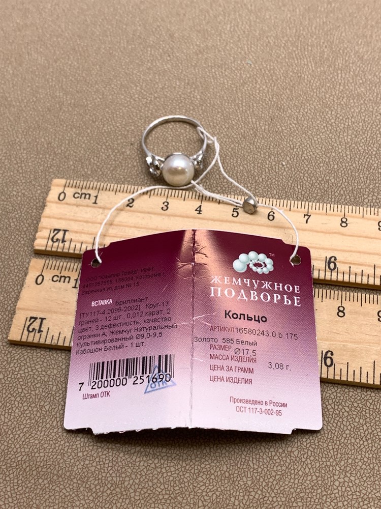 *Кольцо р.17,5 Белый Жемчуг д.9-9,5 цв Белое арт. 1.0243.0.b-690 Вес 3,08 г