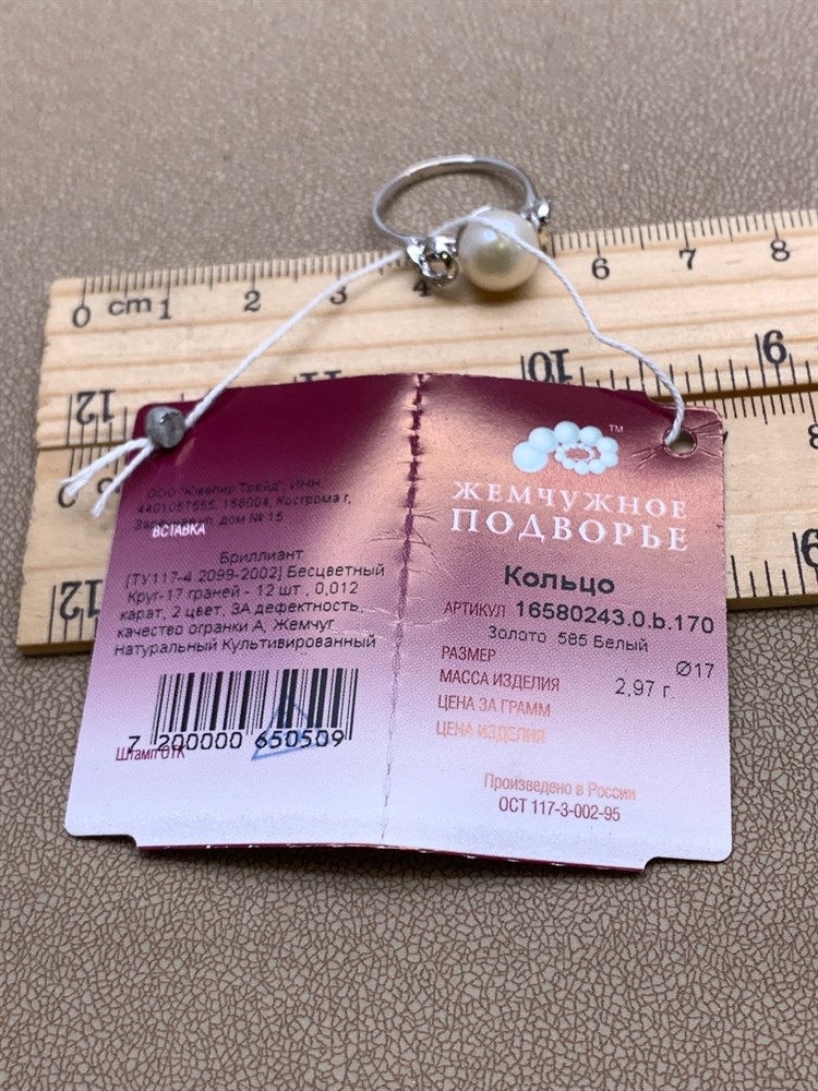 *Кольцо р.17 Белый Жемчуг д.9-9,5 цв Белое арт. 1.0243.0.b-509 Вес 2,97 г