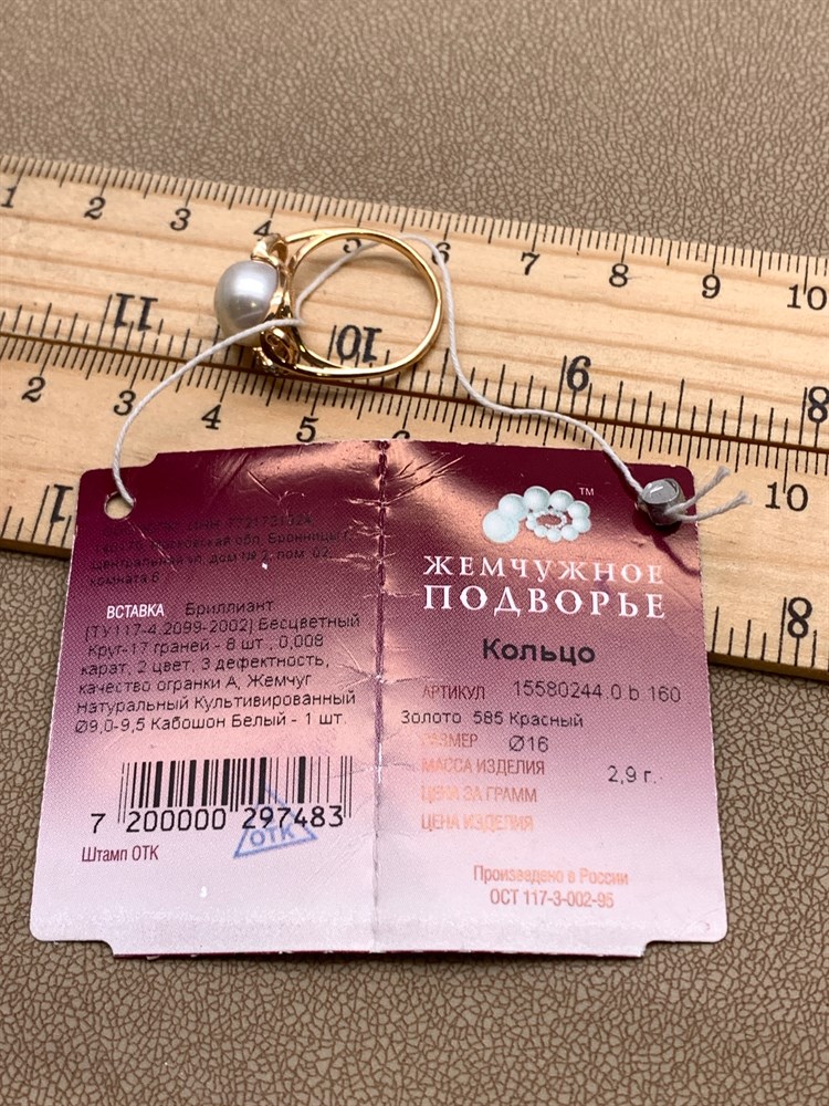 *Кольцо р.16 д.9-9,5 Белый Жемчуг цв Красное арт. 1.0244.0.b-483 Вес 2,9 г