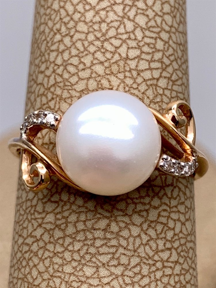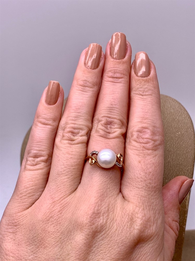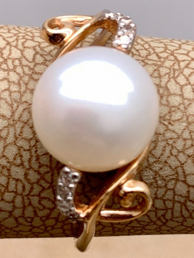 *Кольцо р.16,5 д.10 Бриллиант Белый Жемчуг цв Красное арт. 12530-110-585 вес 4,37 г
