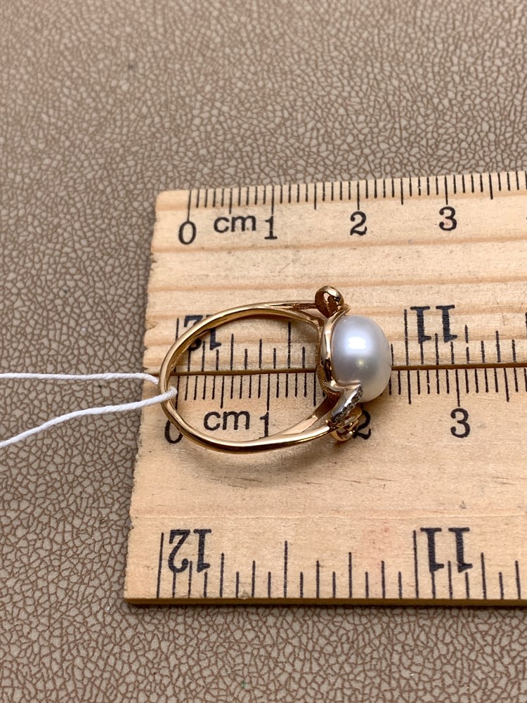 *Кольцо р.17,5 д.10 Бриллиант Белый Жемчуг цв Красное арт. 12529-110-602, вес 3,53 г