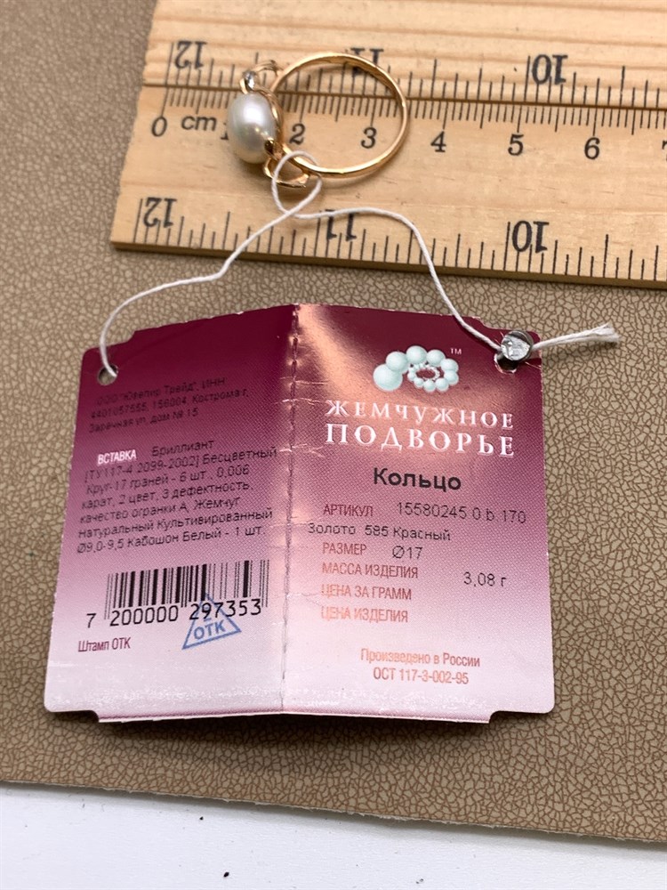 *Кольцо р.17 Белый Жемчуг д.9-9,5 цв Красное арт. 1.0245.0.b-353 Вес 3,08 г