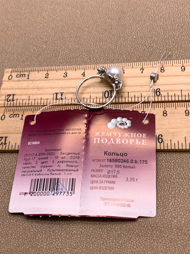 *Кольцо р.17,5 Белый Жемчуг д.9-9,5 цв Белое арт. 1.0246.0.b-735 Вес 3,35 г