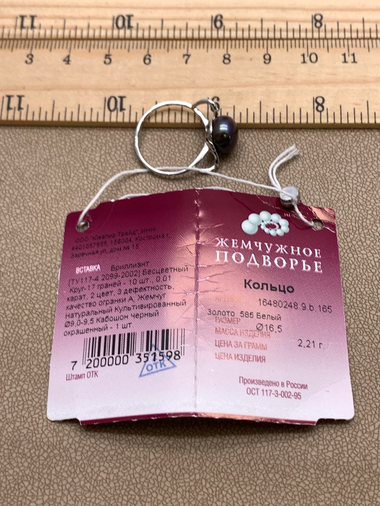 *Кольцо р.16,5 Черный Жемчуг д.9-9,5 цв Белое арт. 1.0248.9.b-598 Вес 2,21 г