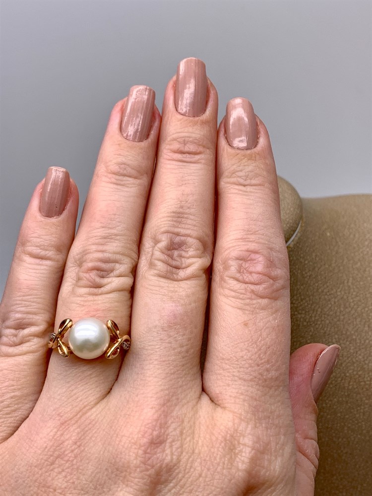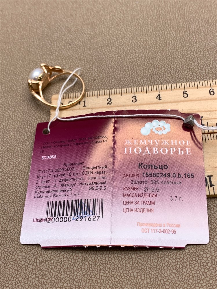 *Кольцо р.16,5 Белый Жемчуг д.9-9,5 цв Красное арт. 1.0249.0.b-627 Вес 3,7 г