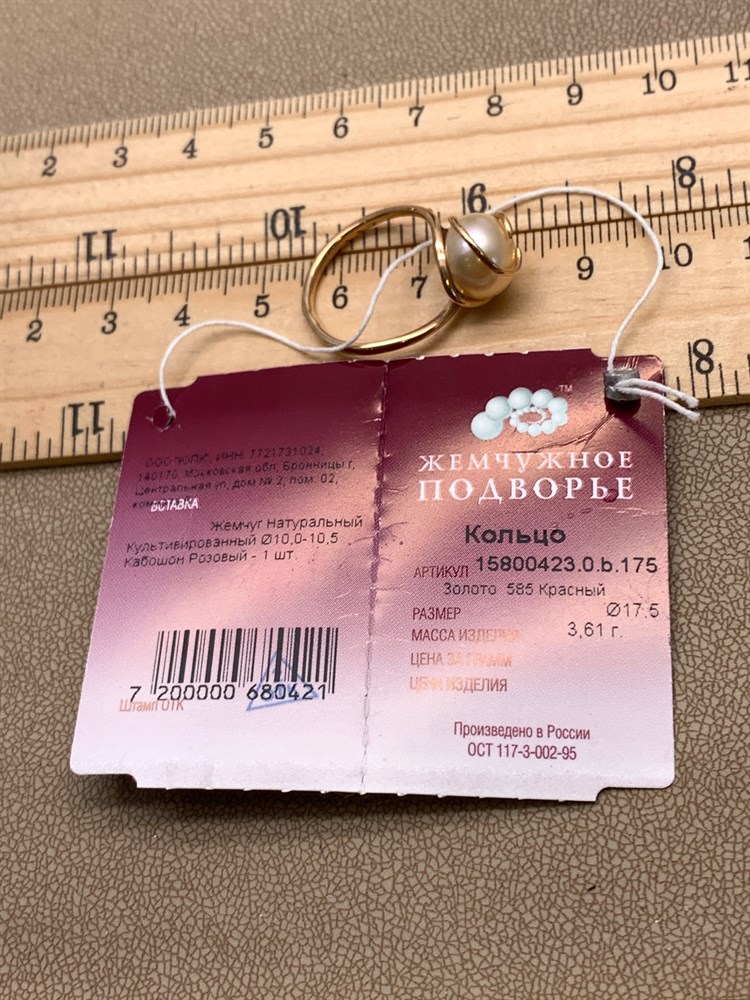 *Кольцо р.17,5 Розовый Жемчуг д.10-10,5 цв Красное арт. 1.0423.0.b-421 Вес 3,61 г