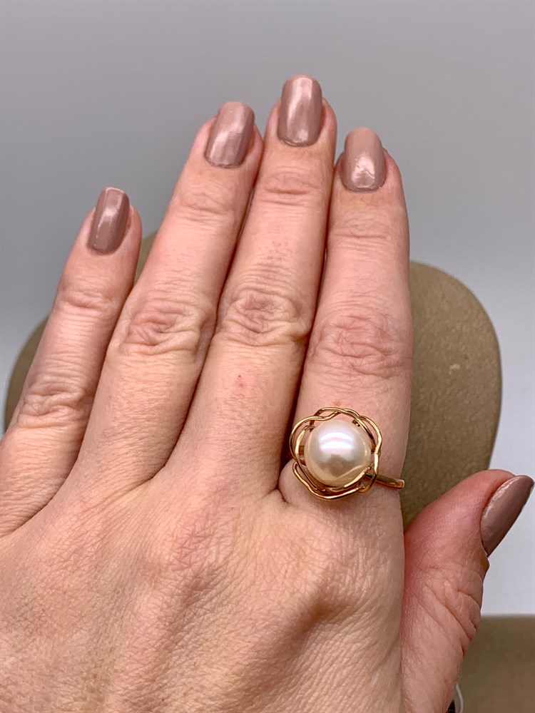 *Кольцо р.17 Белый Жемчуг д.10,5-11 цв Красное арт. 1.0176.0.b-196 Вес 3,78 г