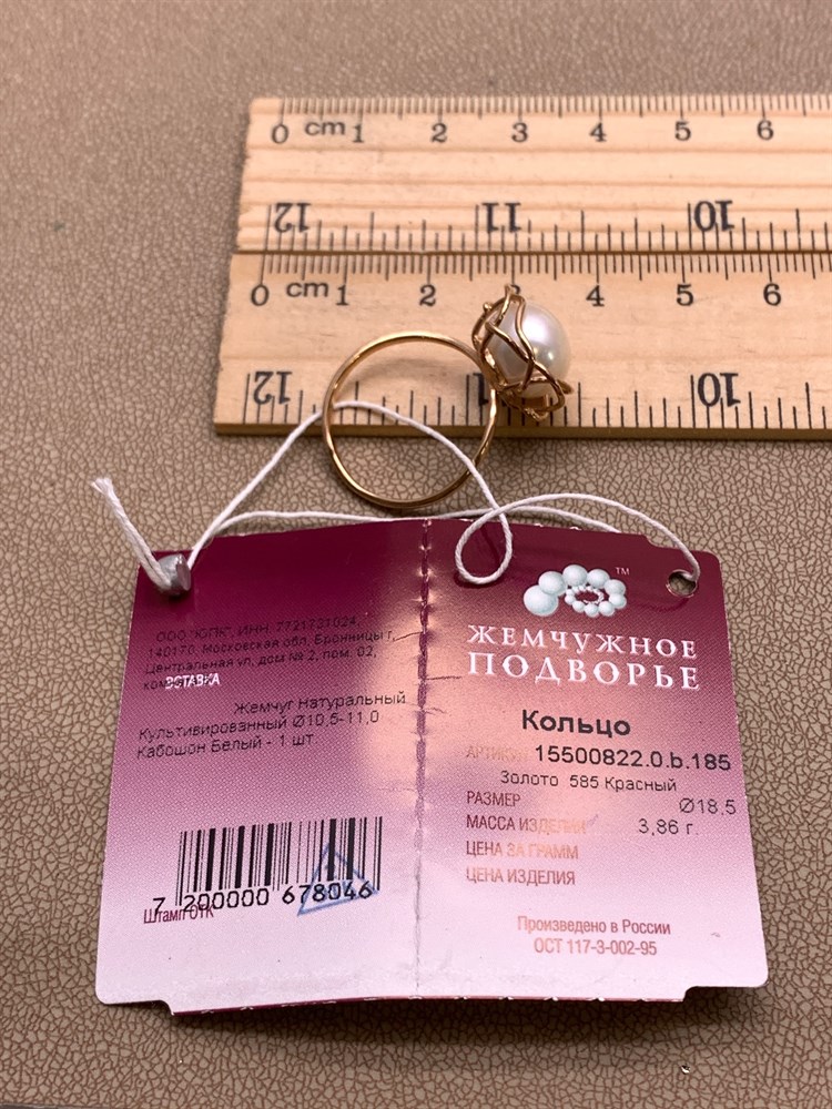 *Кольцо р.18,5 д.10,5-11 Белый Жемчуг цв Красное арт. 1.0822.0.b-562 Вес 3,68 г