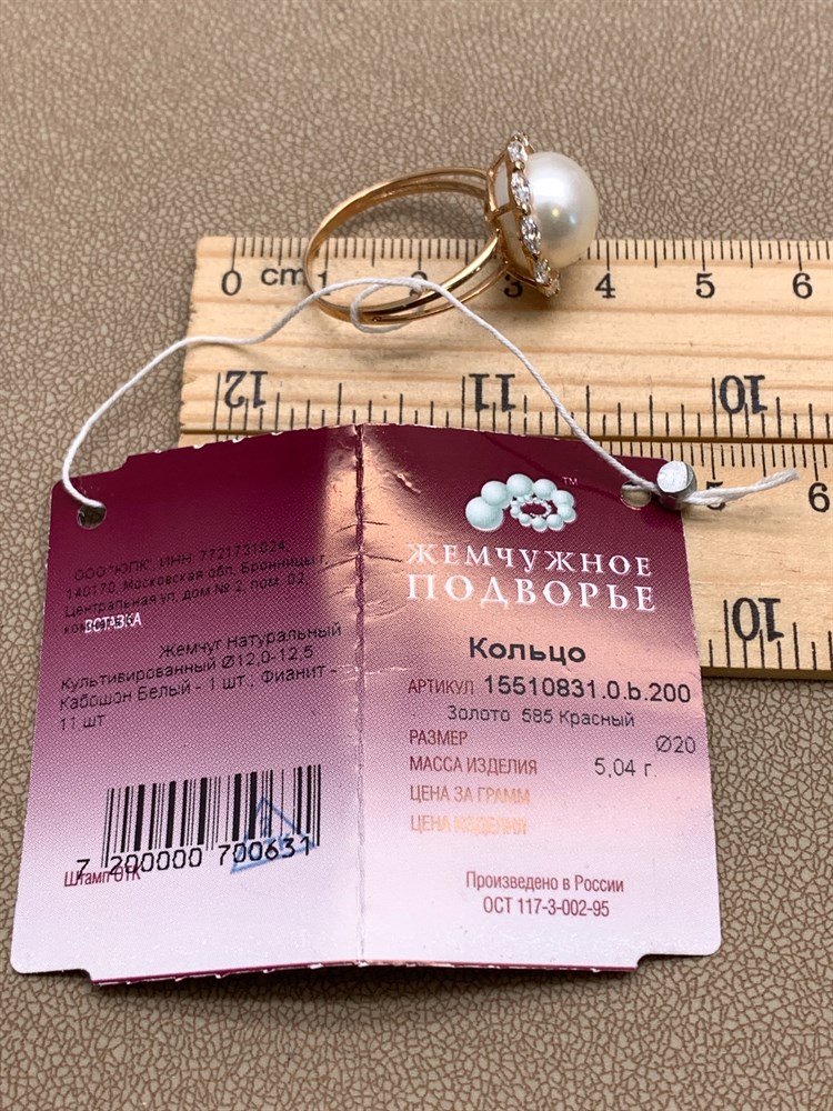 *Кольцо р.20 Белый Жемчуг д.12-12,5 цв Красное арт. 1.0831.0.b-631 Вес 5,04 г