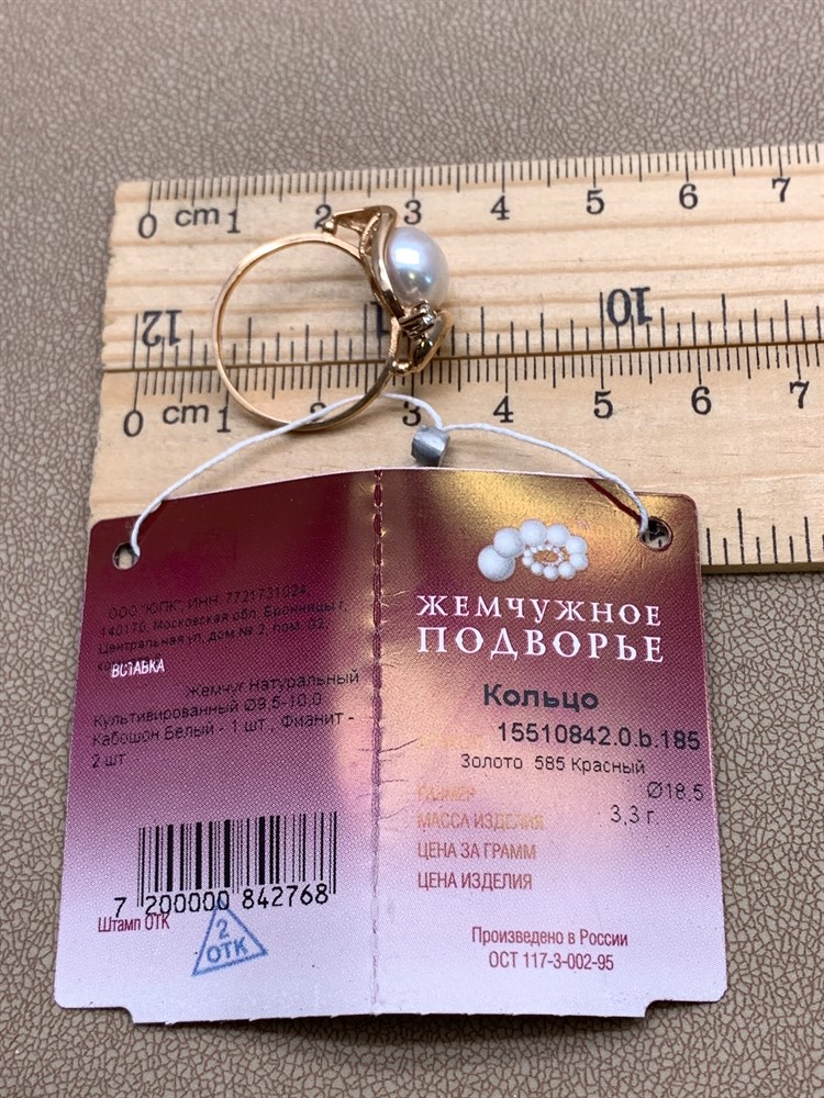 *Кольцо р.18,5 Белый Жемчуг д.9,5-10 цв Красное арт. 1.0842.0.b-768 Вес 3,3 г