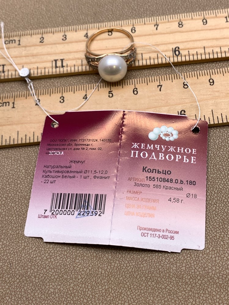 *Кольцо р.18 Белый Жемчуг д.11,5-12 цв Красное арт. 1.0848.0.b-392 Вес 4,58 г