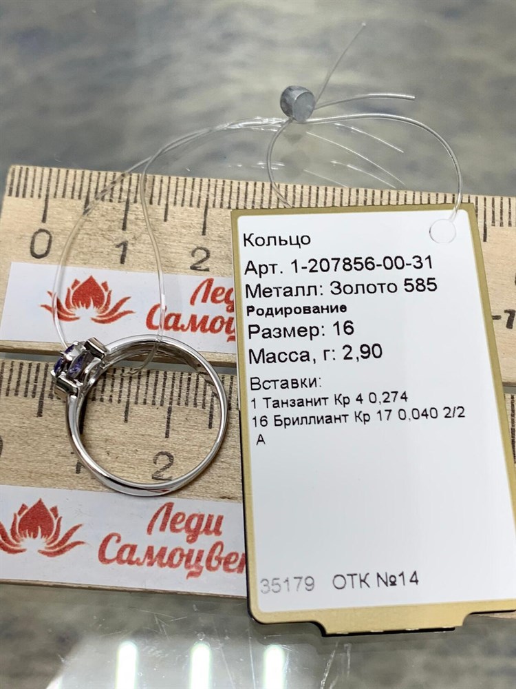 *Кольцо р.18 Танзанит цв Белое арт. 1-207936-00-31-109 вес 5,94 г