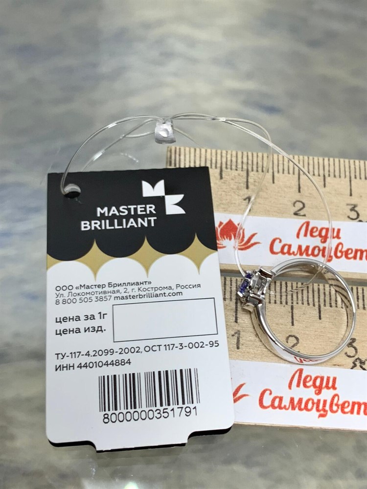 *Кольцо р.18 Танзанит цв Белое арт. 1-106-723-31-299 (вес 2,86 г)