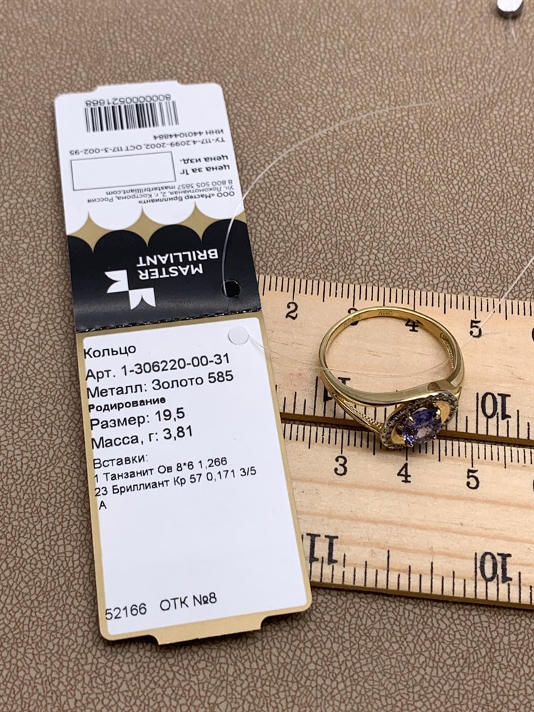 *Кольцо р.19,5 Танзанит цв Лимонное арт 1-306220-00-31-668 вес 3,81 г