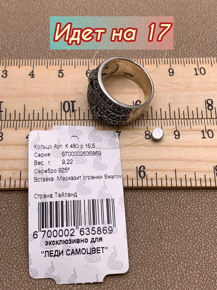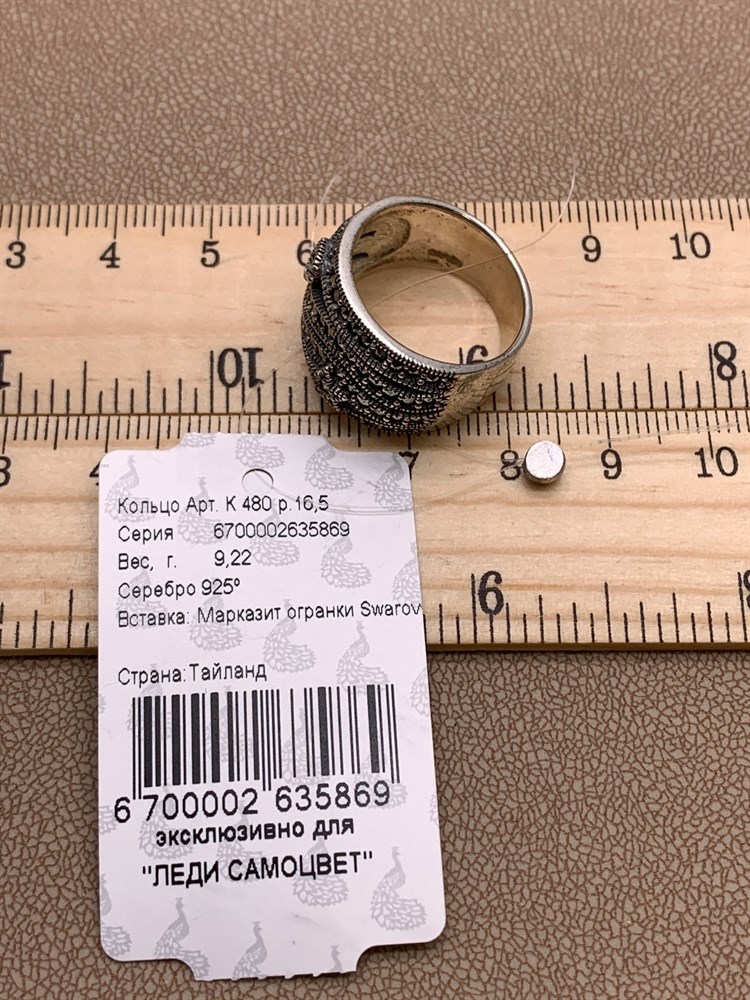 *Кольцо р.16,5-17 Марказит арт. К 480-869 Вес 9,22 г