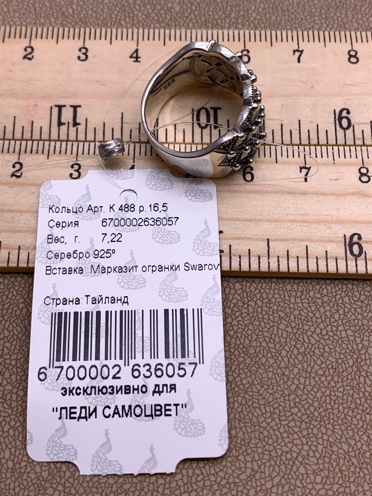 *Кольцо р.16,5-17 Марказит арт. К 488-057 Вес 7,22 г