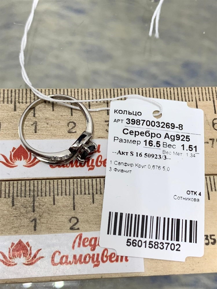 *Кольцо р.18 Сапфир арт. 3037002982-514 Вес 1,57 г