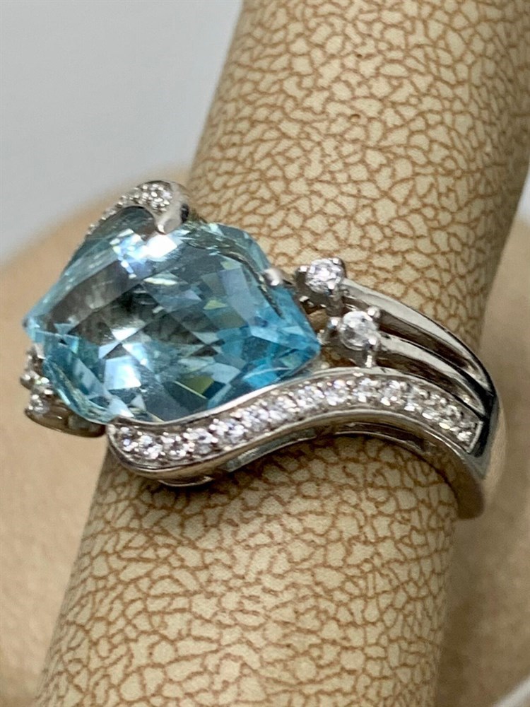 *Кольцо р.16,5 иск Голубой Топаз арт. CZ-R00374-X-W-BU-X-W-575 вес 8,7 г