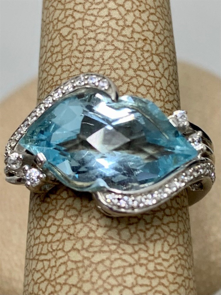 *Кольцо р.17 Голубой Топаз арт. AS-R11082-X-W-BU-X-W-449 вес 5,4 г