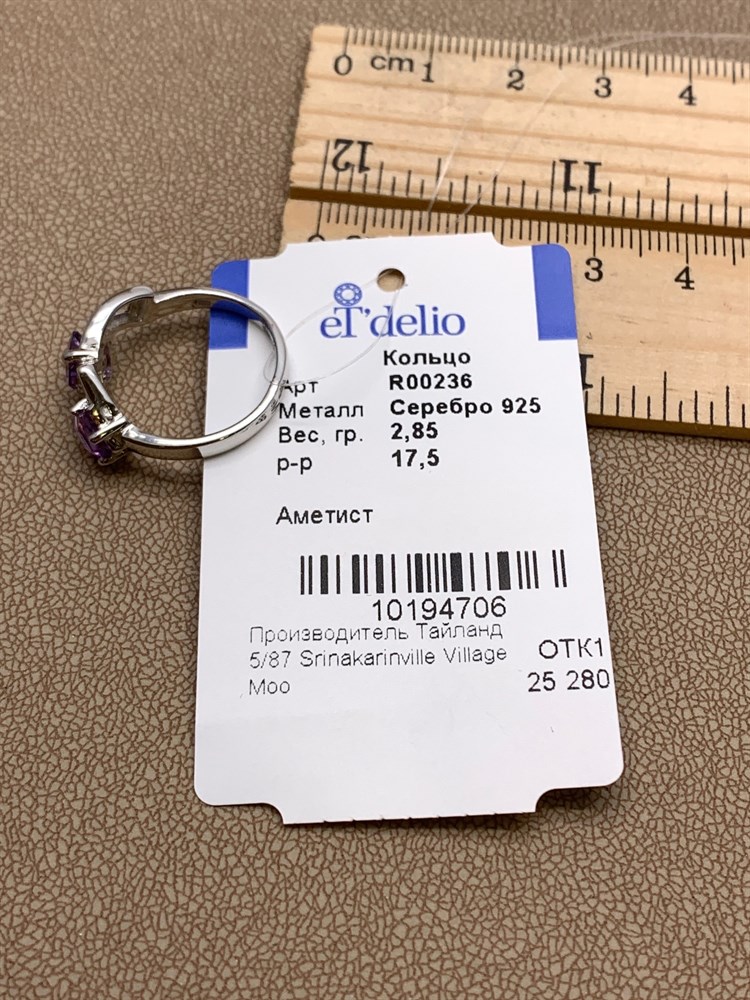 *Кольцо р.17,5 Аметист арт. R00236-706, (вес 2,85 г)