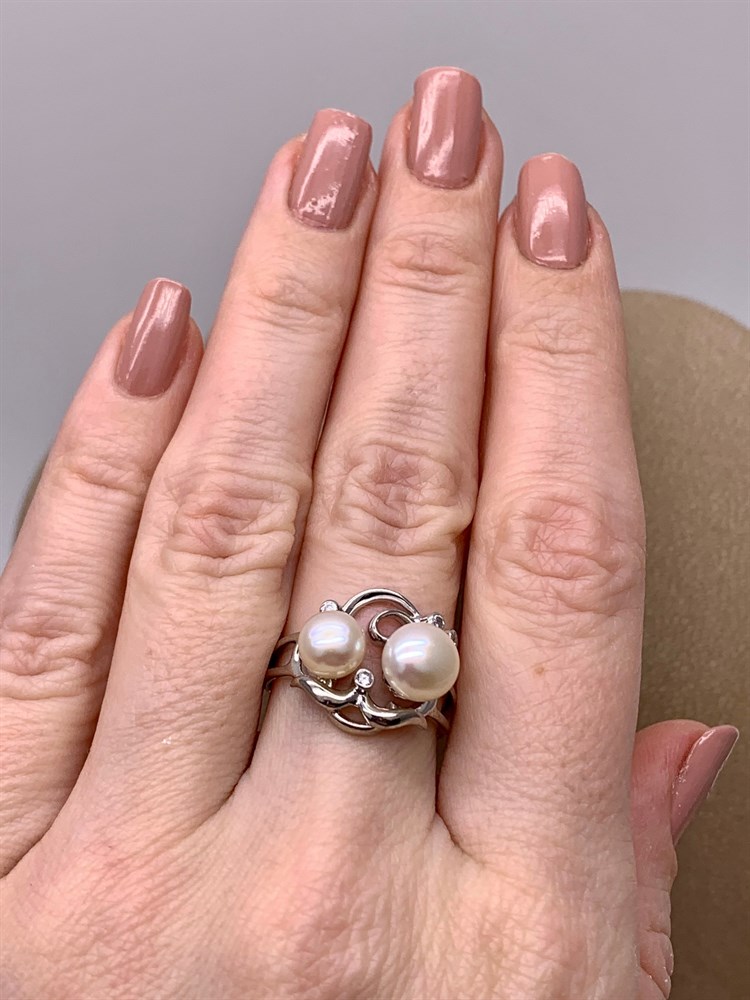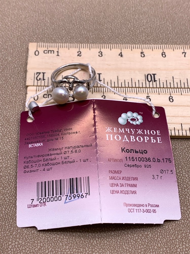 *Кольцо р.17,5 Белый Жемчуг д.6,5*7 д.7,5*8мм арт. 1.0036.0.b-967 Вес 3,7 г
