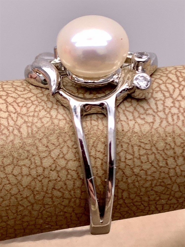 *Кольцо р.18,5 Белый Жемчуг д.7*7,5мм арт. 1.0106.0.b-372 Вес 4,84 г
