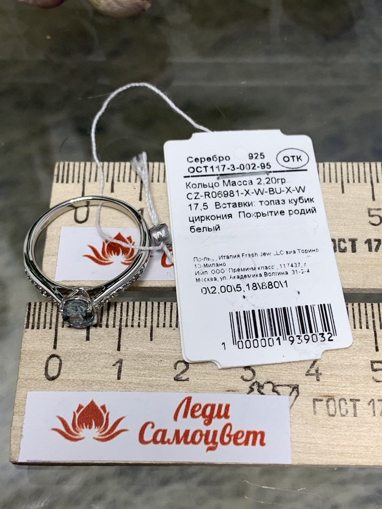 *Кольцо р.18,5 Топаз Лондон арт. AS-R11049-X-W-BU-X-W-273 вес 1,5 г
