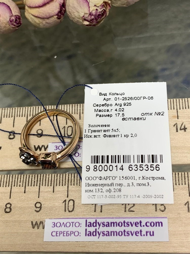 *Кольцо р.17,5 Гранат Пироп арт. 01-2526/00ГР-06-356 Вес 4,02 г